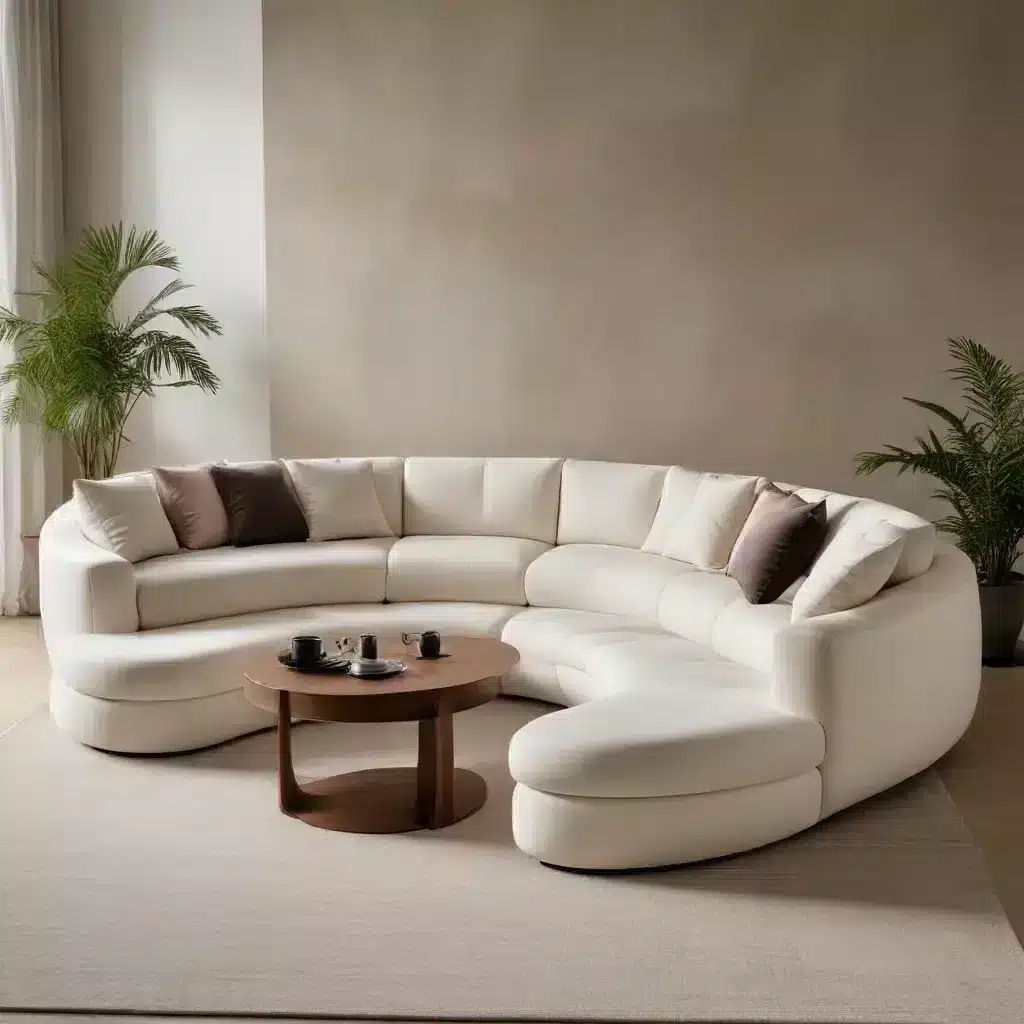 Coffee Table Selection: Opt for a round or oval coffee table to echo the curved lines of the sofa and facilitate easy movement around the seating area.