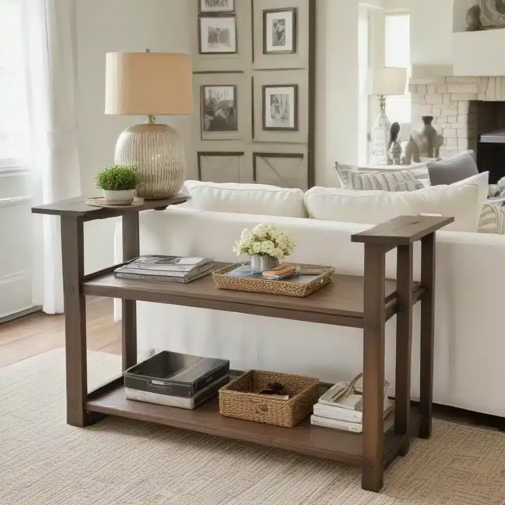 Personalized Touches: To truly make a sofa table feel like a reflection of the homeowner’s personal style, the addition of unique and meaningful accessories can make all the difference. This could include framed artwork, family photographs, or sentimental trinkets that add a touch of personality and character to the space.
